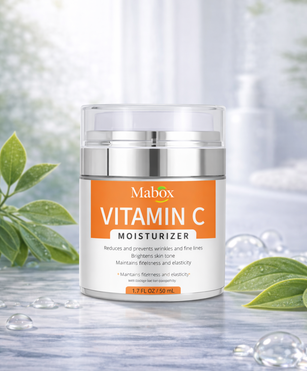Mabox Vitamin C Korean Beauty Moisturizer Cream for Face and Body Brighten, Hydrate, and Revitalize Your Skin Indulge your skin in the luxurious nourishment of Mabox Vitamin C Korean Beauty Moisturizer Cream. This powerful formula, enriched with Vitamin C, Hyaluronic Acid, Niacinamide, and Jojoba Oil, delivers a multitude of benefits for a radiant, youthful complexion: Brightening and Anti-Aging: Vitamin C fights free radicals to help prevent sun damage, fade dark spots, and boost collagen Deep Hydration: Hyaluronic Acid plumps and hydrates skin, leaving it supple and dewy. Improved Skin Tone and Texture: Niacinamide minimizes the appearance of pores and refines skin texture for a smoother, more even look. Soothing and Nourishing: Jojoba Oil closely mimics skin’s natural sebum, providing lasting moisture and a healthy glow. Suitable for All Skin Types: Mabox Vitamin C Moisturizer is gentle enough for everyday use on all skin types, including sensitive skin.